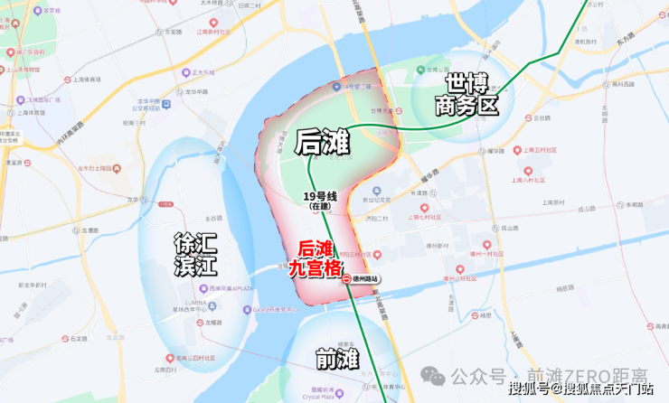 交通方面:原有7号线后滩站,串联徐汇滨江、静安寺等核心商圈,但相对来讲,站点近后滩商办,离九宫格略远;