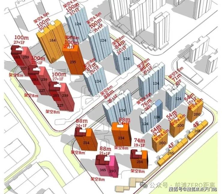 根据项目规划设计方案,07-01地块拟建9幢25-32F的高层住宅、若干社区配套用房以及部分商业设施,共计规划约794户。; 全部楼栋均采用一层架空设计;