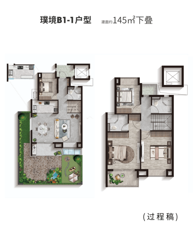 叠加别墅面积123至145平方米,联排别墅为182至202平方米,激发更多生活灵感。下层地下室可改造成家庭影院、收藏室或工作空间;星空露台在夏夜适合观星和与朋友聚会。上层坡屋面阁楼,可成为孩子的梦幻乐园,或作为主人的安静书房。