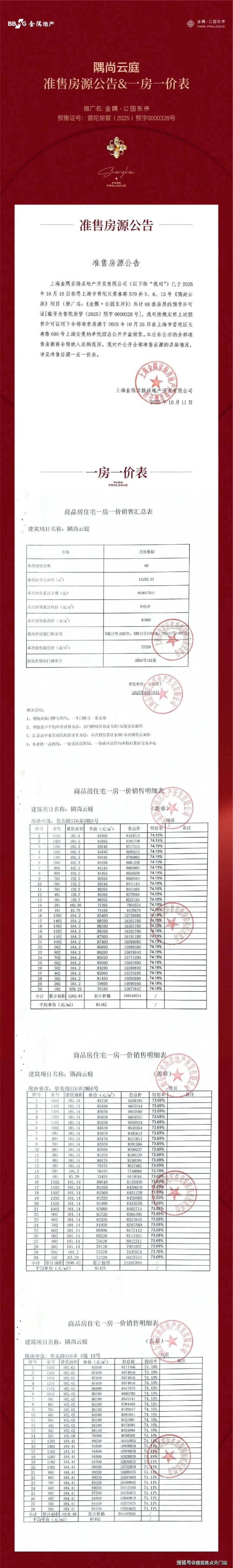 前期一房一价发布: