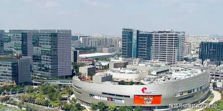 在桥上可以看到莘庄商务区的天际线,世宏金源中心、旭辉莘庄中心、西子国际、中铁华东总部、中铁诺德、AFC大虹桥国际等楼宇。