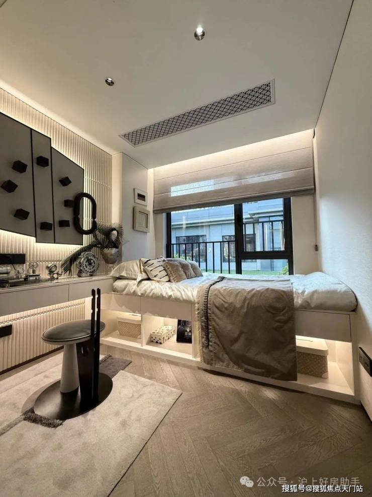 归家门厅设计为弧形顶棚,非对称构图,圆润的形式提供给业主放松的情绪价值。可以说是处处体现人居的松弛感和舒适度。