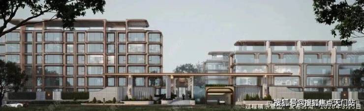 立面设计极具辨识度,摒弃传统风貌复刻,以 香槟金色铝板+玻璃+天然石材为主材,嵌入宫廷珐琅工艺,还原江水流动感,大面积玻璃幕墙搭配 270°环幕视野,将滨江景观最大化引入室内,颜值与质感双在线。