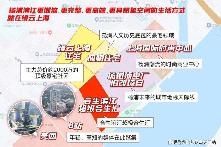 缦云上海是整个杨浦滨江少有的大体量TOD新房,包含购物中心合生汇商业广场、5A甲级写字楼、高端住宅、风貌建筑等