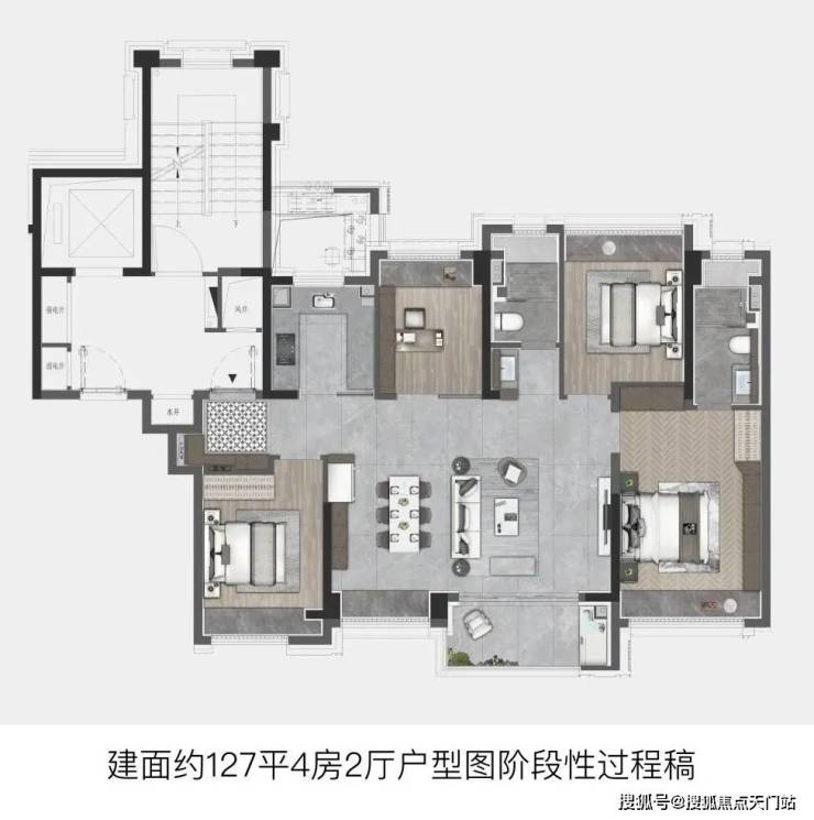 建面约127㎡直接进阶4房,功能性拉满,适配当下越来越多的二胎或三代同堂家庭。
