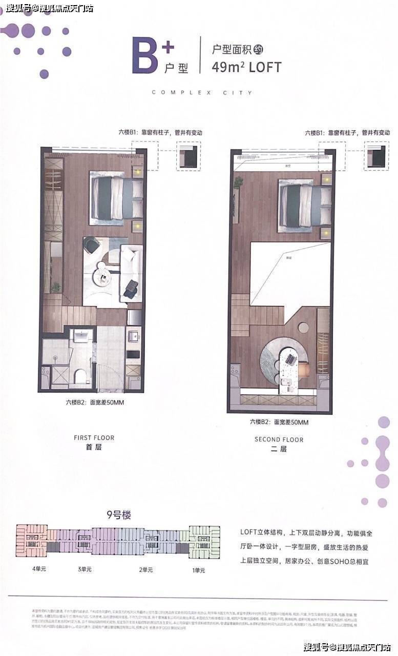 【楼层说明】地下1-2楼和地上1-2楼商业,3楼设备阳台,4-5楼平层公寓,6-12楼4.19米LOFT。
