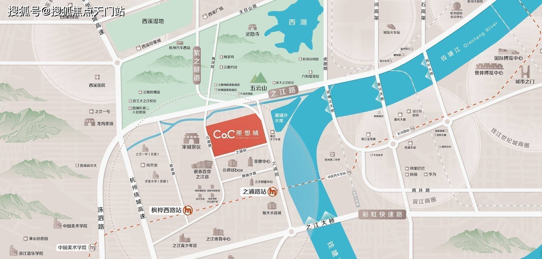 之隔)“拥江发展”战略下继钱江新城、奥体之后备受瞩目的价值高地项目,位于融合“三轴一心”的之江新城CAZ中央活力区。