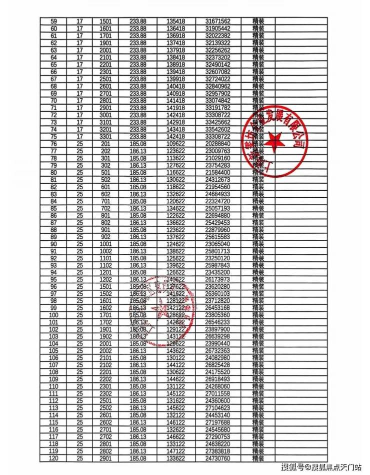 一期一房一价表: