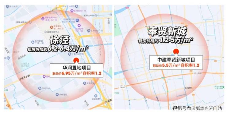 比如青浦徐泾容积率1.2的宅地和奉贤新城容积率1.2的宅地,比起板块其他新房,联动价至少高5000元/㎡!
