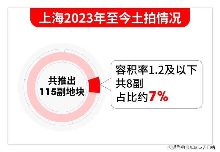 据小胖君统计,上海2023年至今,上海土地市场合计推出115副宅地,仅有 8副容积率1.2及以下地块, 占比约7%。