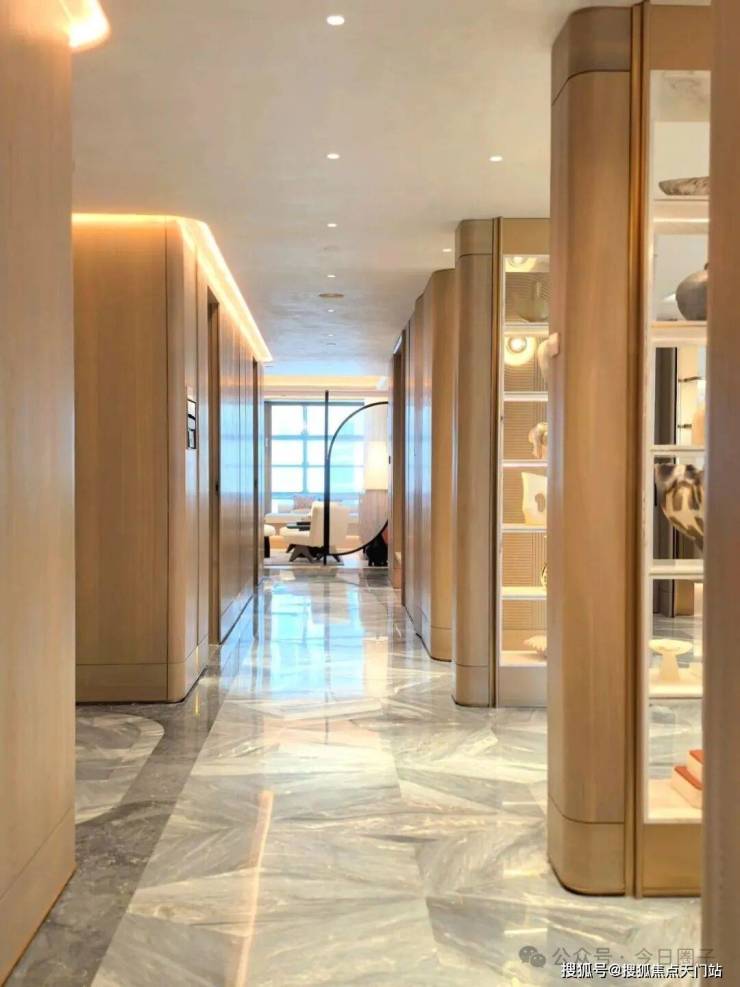 比如,弧形、奢石与灯光等相得益彰且设计感满满的架空层。