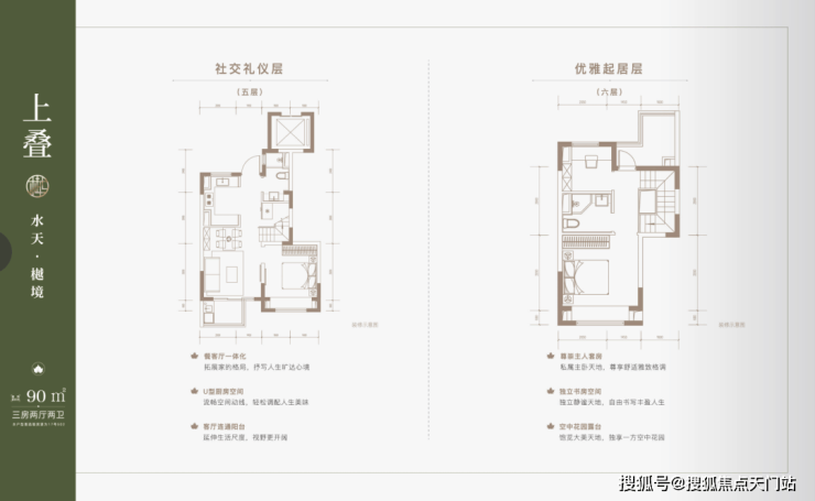 上叠产品都是带有空中花园露台,日常聚餐、烧烤、开party等娱乐活动有大展拳脚的空间,同时客餐厅一体化+U型厨房空间+尊崇主卧套房,户型设计合理,格局方正。