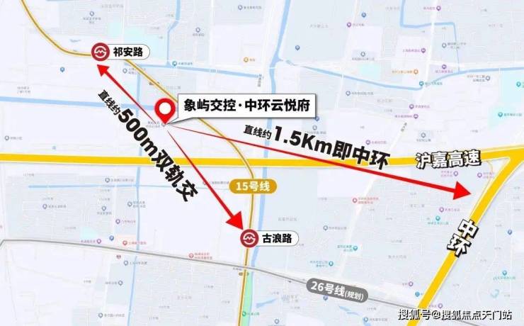 15号线:祁安路1、2号口直线距离约500米;距离古浪路地铁站直线距离约700米左右。