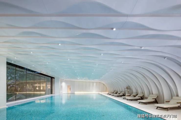 此后,翡雲悦府更是持续用“实景更新” 保持新鲜感:9 月开放的雲镜 CLUB 泳池,堪称 “泳池界的天花板”——25×10 米恒温泳池汲取扎哈・哈迪德曲线美学,漂浮式玻璃边框让水体与浦东天际线无缝衔接;南斯拉夫白石材从巴尔干半岛原矿开采,经棱镜切割工艺雕琢;定制三曲面铝板用 3D 整铸技术打造,搭配智慧水位调节与逆流循环系统,让游泳成为“疗愈级体验”。