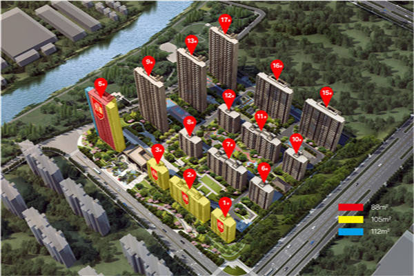 高层5#(东边户105㎡中间户88㎡西边户112㎡)