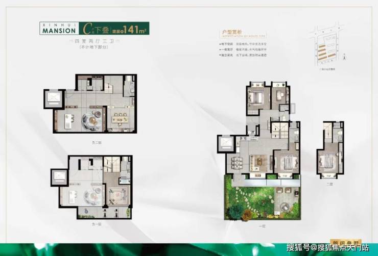 下叠建面约141平米四室三卫