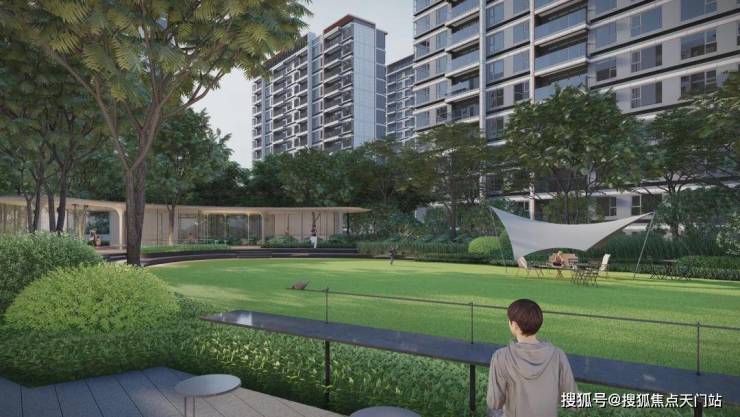 另外,项目还打造了一纵两横森氧艺境城市社区,其中涵盖了约400米无界宽景自然艺术轴、约460米流动的江之界森林界面以及约240米社区街心焕活轴。