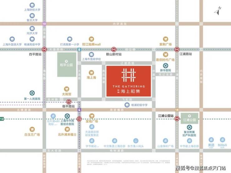 商业地标:北外滩来福士、瑞虹天地、控江旭辉mall、紫荆广场、白玉兰广场、北外滩480米地标(规划)