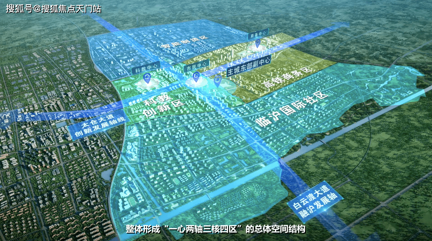 ◆ 四区,临沪国际社区、科教创新区、高铁商务区、高端智造区。