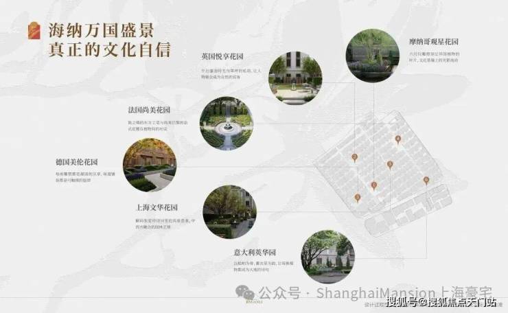 景观设计引入“六大万国花园”,汇集英式、法式、德式、意式等造园体系