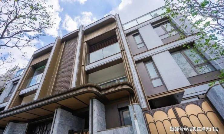 · 维斯康白石材:搭配仿铜色铝板,奢华演绎立面层次,弧形设计对标老静安康定壹拾玖;