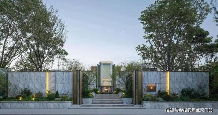 借鉴思南公馆经典的三重归家礼序,项目巧妙利用原始地形打造拥有约2米高差的归家台地,特别设计"三升九阶"的三段式台阶,寓意"步步登高、层层递进、终臻圆满"。