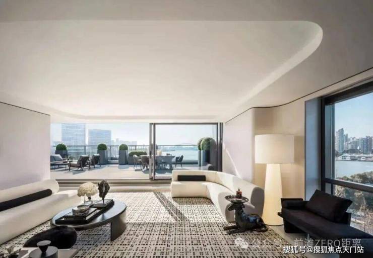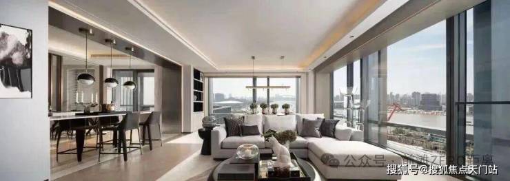 ·建面约240㎡边套,采用L型转角落地窗,打造了 270°环幕瞰江视野,无论身处客厅、餐厅,都能以不同角度眺望黄浦江的波光粼粼。