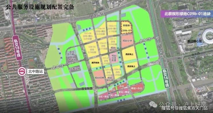 2025年3月28日,在上海第三次土拍中,绿城以溢价率40%摘得北蔡楔形绿地宅地,楼板价 71414元/㎡,时隔多年重回浦东。项目直连张江科学城,毗邻花木-龙阳路城市副中心。一句话总结——离尘不离城:既是“城市绿肺”,也是“科创心脏”。