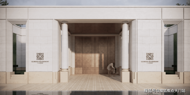 承袭设计大师斯卡帕的美学精髓,将叠级设计贯穿社区全域,从廊柱,到水景,再到窗套细节,让“折叠的艺术”化为日常。在米色为基调的空间里,伴随阵列意式拱券石材铺陈产生了秩序,没有任何多余色彩,也没有任何的喧嚣。