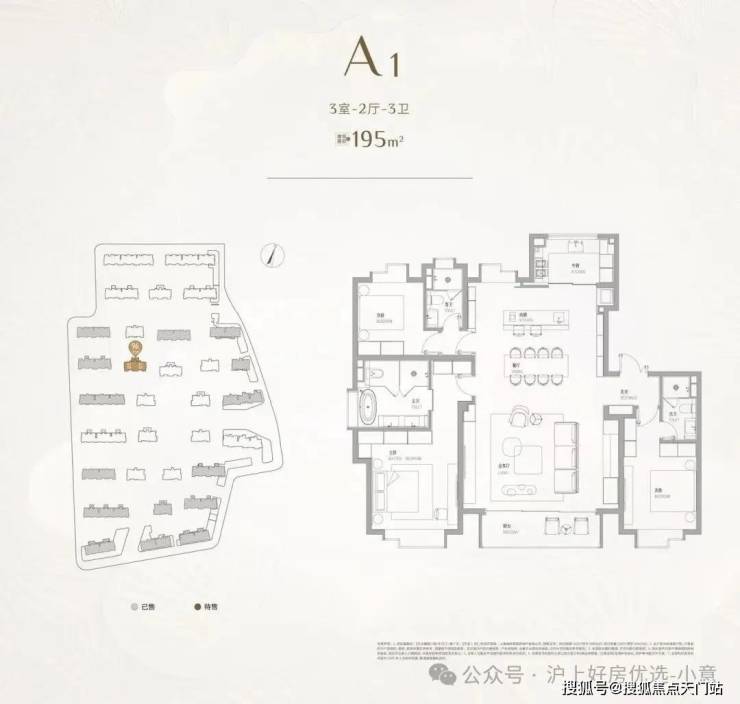 建面约195㎡大三房 | 藏品级尺度奢享 : 五年全市供应占比仅约0.04%,以接近200㎡的尺度只做三房,重新定义舒适度上限,是板块内绝无仅有的“资产型藏品”。