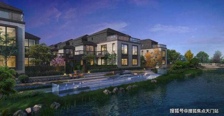 【上实·和风院】建筑外观是 新中式格调,以黑色面瓦为黛顶,整体线条简洁明快。