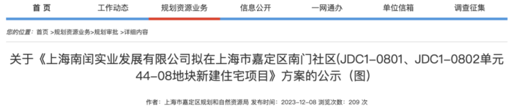 12月8日,嘉定区规划和自然资源局发布了上海市嘉定区南门社区(JDC1-0801、JDC1-0802单元44-08地块新建住宅项目设计方案。