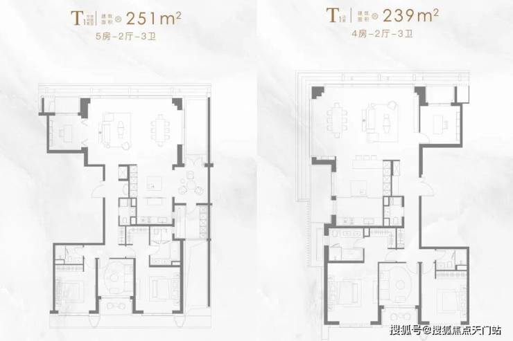 建面约239㎡边套,采用L型转角落地窗,打造了 270°环幕瞰江视野