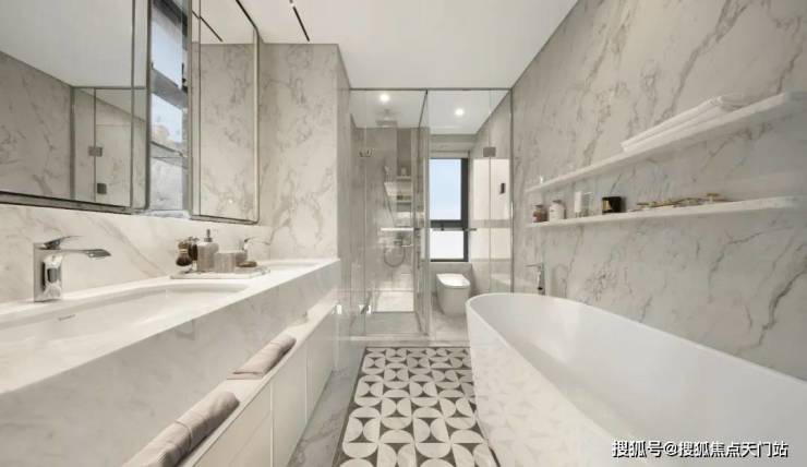 此外,室内还大量运用 雅士白大理石、大花白岩板、皇家孔雀岩板、水纹夹丝玻璃、仿洞石岩板、卡拉卡塔白岩板、灰色皮革等定制材质,以华润置地独有的“五奢体系”,彰显着对高品质生活的极致追求。