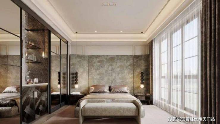 衣帽间、梳妆台、2米大床甚至是浴缸,都可以轻松容纳,再加上超大落地窗的设计,居住舒适度直接拉满!