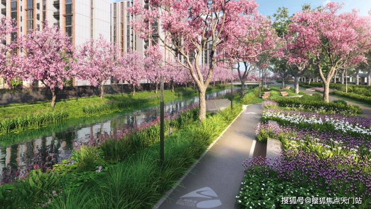 值得一提的是,项目将社会公共交通系统、城市道路系统与社区道路系统相联街,结合自然生态河道、公建、商业,规划合理的人流动线布局,使得整个居住区与城市网连成一个整体,实现社区与城市的联系与互动。