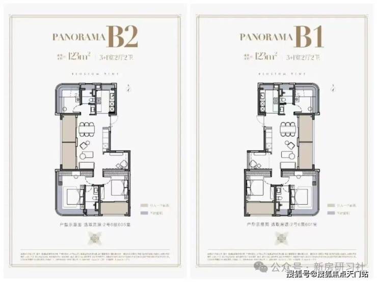 建面约123㎡(高层)三阳台和双270°转角,飘窗(实得率应该可以达到96%左右)