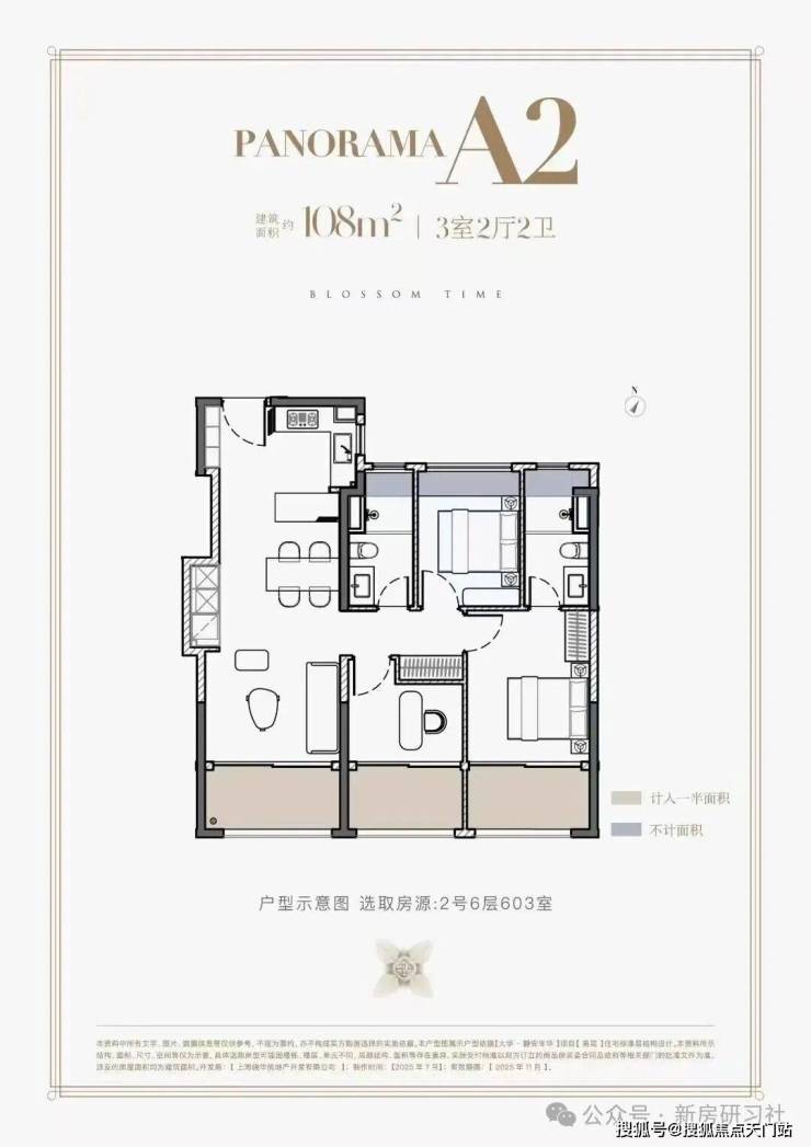 建面约108㎡(高层)三个阳台全部南向设计(实得率差不多在94%左右。)