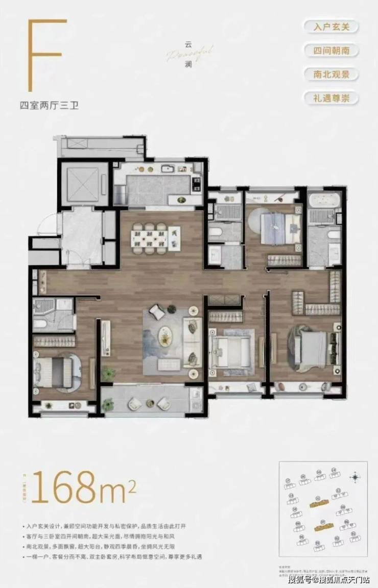 另外,四房户型双房朝北似乎是逃不开的问题,但陆家嘴锦绣云澜这个建面约168㎡的4房却做到了三间卧室全朝南,并且 南向双套房设计。