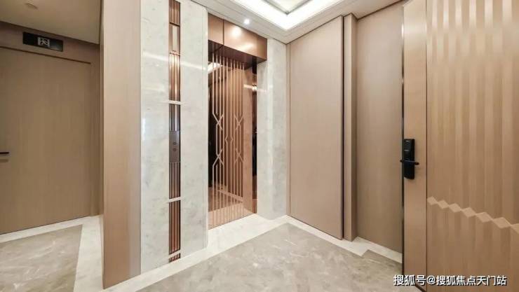 首先,从出独立电梯厅门的那刻起,你便能感受到宝华的“无所不用其极”!全户型私享全装修的电梯厅,配合金属包边点缀,甚至地板的石材都是人字形铺法,彰显尊贵!
