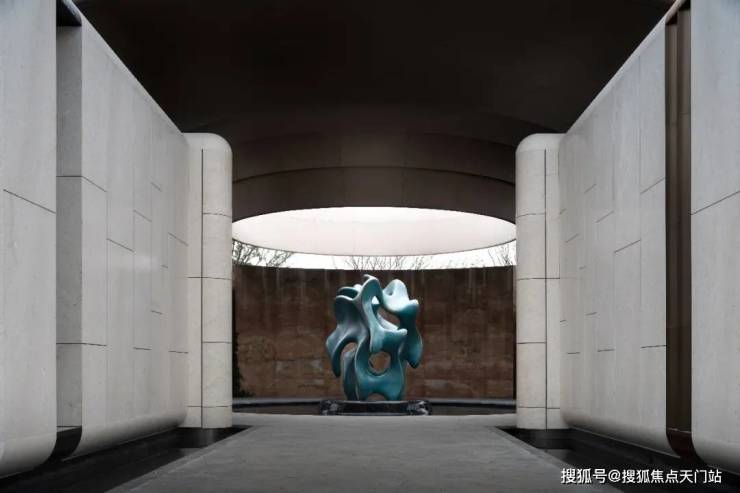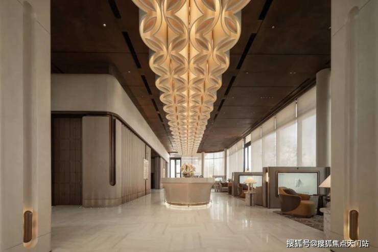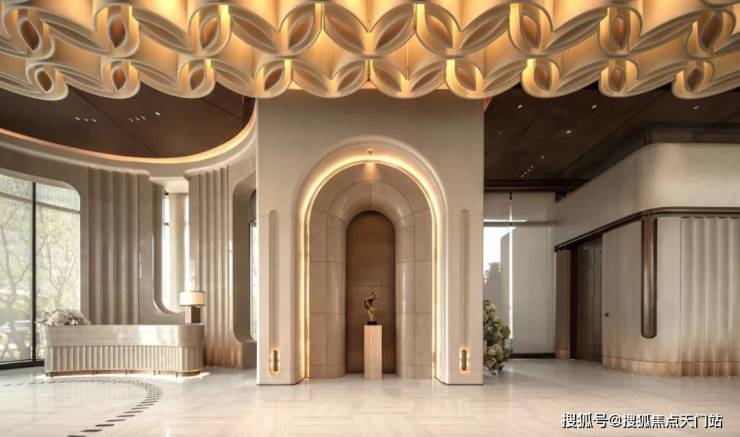 项目归家门庭采用石材, 叠加铝板元素,构建出极具质感的空间和松弛氛围,令张江的归家仪式感焕然一新。