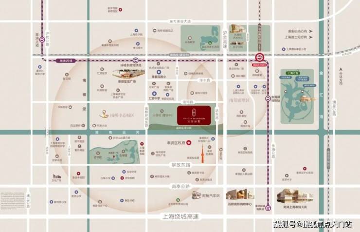 该地块位于南桥核心地段,南侧紧邻浦南运河休闲步道,北侧有S4高速出入口,紧邻地铁5号线环城东路站,1站至望园路站还可换乘15号线(南延伸段在建),进站直达紫竹高新园区和莘庄城市副中心,北侧还有市域南枫线(在建)环城西路站,周边三轨交环绕。