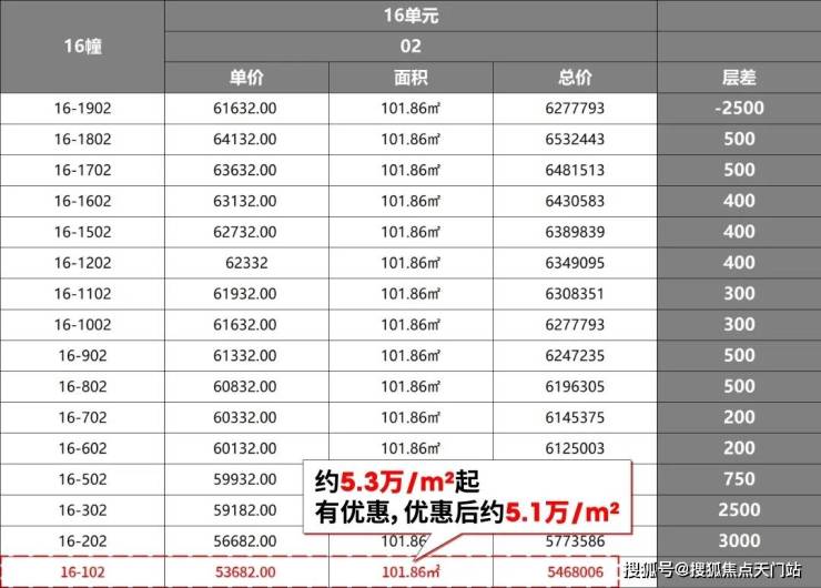 根据一房一价,这批房源整体约5.3万/㎡起,叠加优惠,实际约5.1万/㎡起,这个价格在单价日益高企的闵行几乎绝迹了,堪称捡漏价。