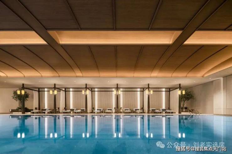 最让我心动的是这个无边泳池! 招商序以 “室内外自然无界”的设计手法,将无边泳池与庭院美景在视觉上连成一体,当阳光映照跃动的蔚蓝,业主畅游的同时还能包揽庭园诗意;深色木架构撑起白色帏幔,池边躺椅的设计也极具豪华酒店的优雅与尊贵,穹顶则延续着海派穹顶的经典设计元素,以细腻的木纹铝板打造。以往只在奢华度假酒店的体验在家楼下的会所也能拥有!