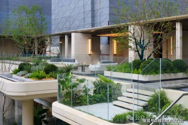 点睛之笔在于 4层悬浮式阶梯, 设计理念据说来自全球十二大奢华酒店之一的迪拜丽晶公寓, 每一个观景露台都种植着不同的植被,一步一景,更重要的是,不同的露台对应着不同的观景视野点,将不同高度的下沉式庭院景观,通过极其优雅的方式传递给了业主。 这个归家体验可以说是拉满了!