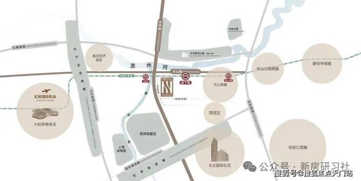 【地铁2号线】直线距离威宁路站约800m,北新泾站约200m,东向2站中山公园,4站静安寺,6站人广,9站陆家嘴,直抵浦东国际机场,西向3站虹桥2号航站楼,4站虹桥火车站,是上海名副其实的国际线。