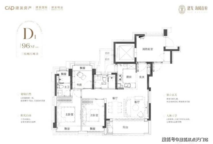 建面约96㎡3房2厅2卫