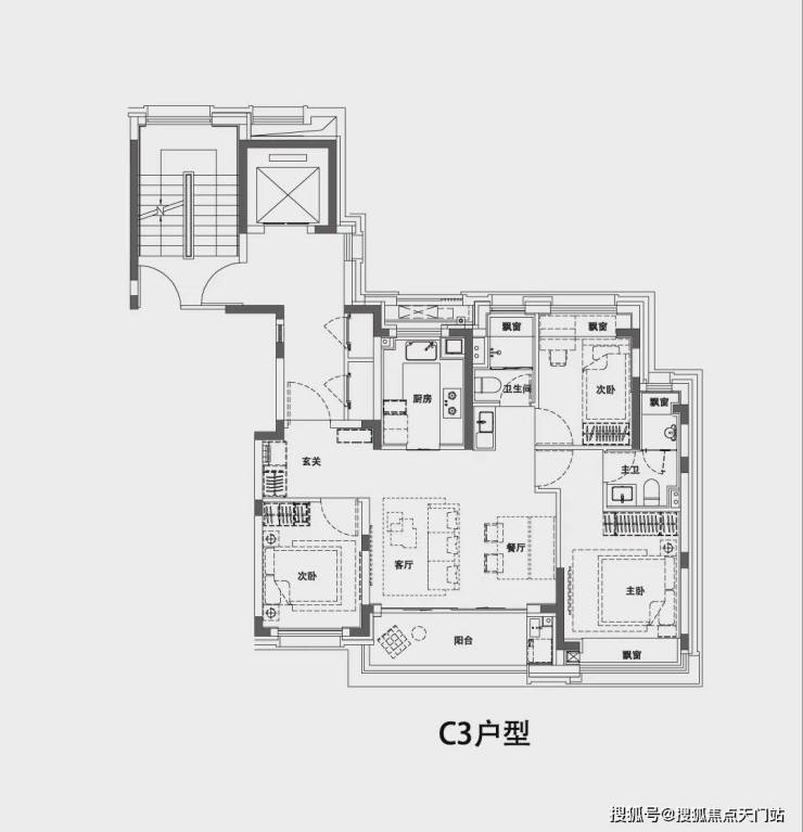 全卧瞰景飘窗设计+“独立”电梯厅,实用面积非常高!