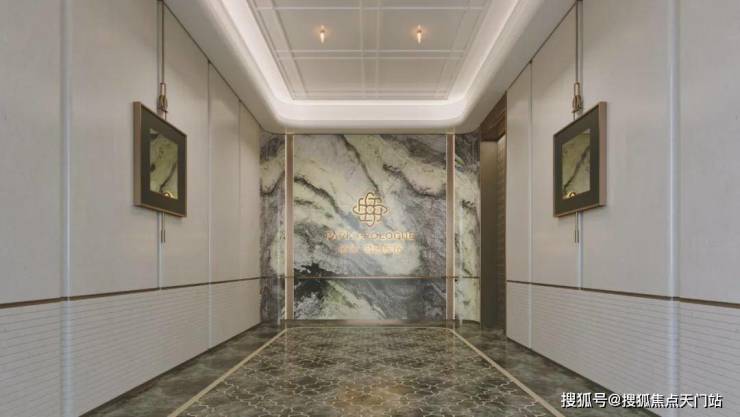 电梯厅融合梵高印象岩板与超白洞石大面积的铺装,彰显出了细腻雅致!