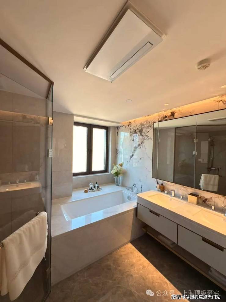 主卧堪称星级套房,配置独立衣帽间、双台盆+淋浴空间+大浴缸。